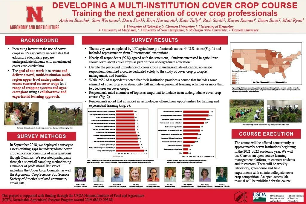 The PSA Education Team presented how they developed their multi-institutional course, training students in cover crop management, at the 2020 Midwest Cover Crops Council Conference February 11-12 in Kansas City, MO. Click the Poster to download.
